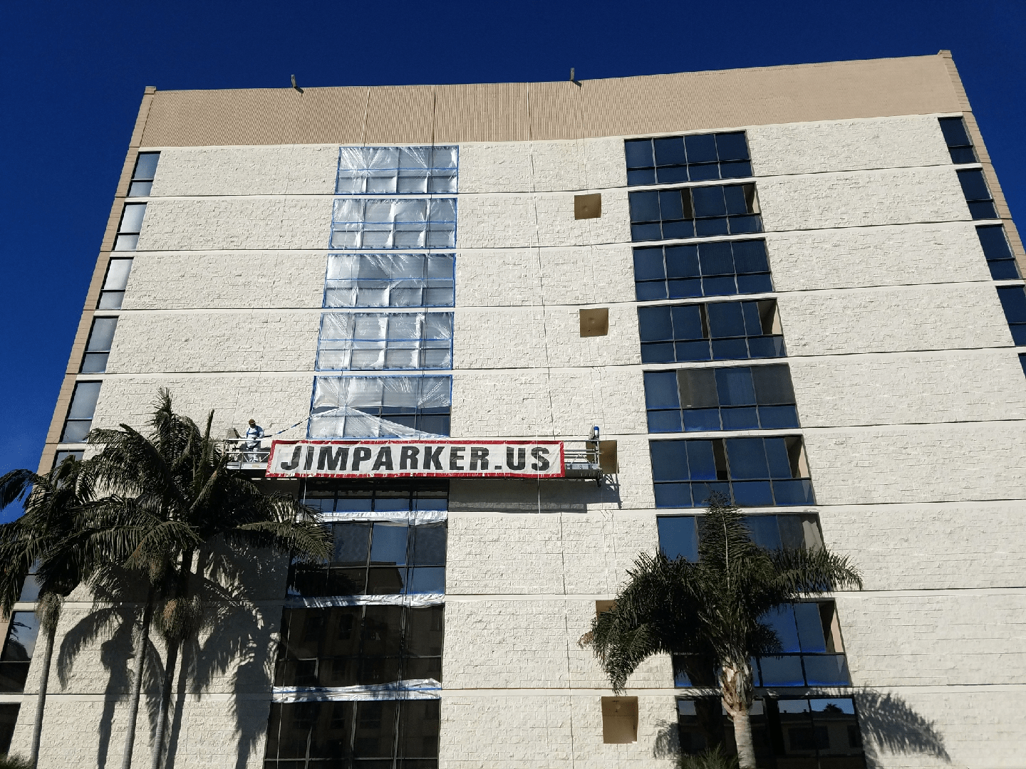 Parker completed the project in minimal time, doing extra work painting the parking structure interior, line striping, painting stairwells, resealing the 3470 building windows, and providing a 20-year waterproof warranty. On Jan 17, 1994, the massive Northridge Earthquake struck causing hundreds of annealed glass windows to break in these buildings, fortunately, most were tinted with inside film, saving glass shards from raining down. Again Jim Parkers’ company-owned access equipment and crew saved the owner money and time by rapidly installing over $250,000 worth of new window glass at considerable cost savings.