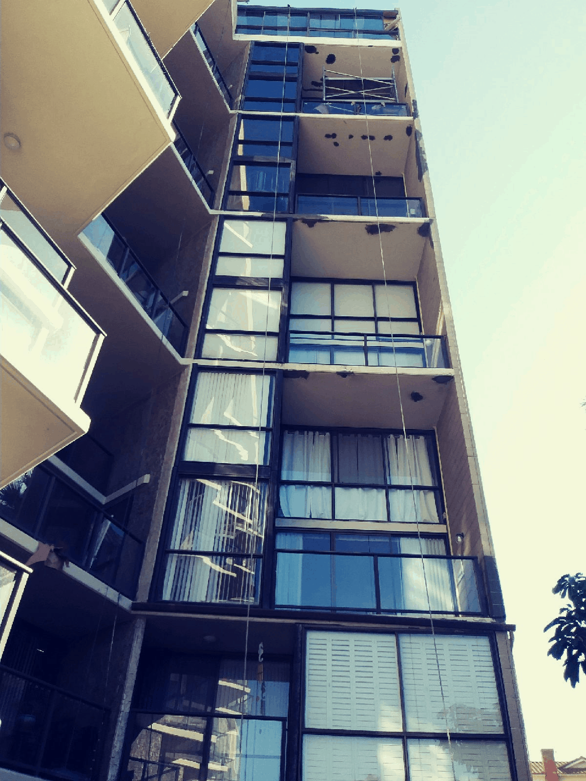 The high-quality Elastomeric Coating used has far surpassed the ten-year warranty period by more than ten years showing no failure at all. The building facades have not been touched up or repainted, they have not even been washed or cleaned since 1997 to remove more than nineteen years of dirt build-up, stains, and harmful chlorides. It remains waterproof with no dis-bonded coating and stands tall as eminent proof of maintenance money well spent. We can do the same for your investment.