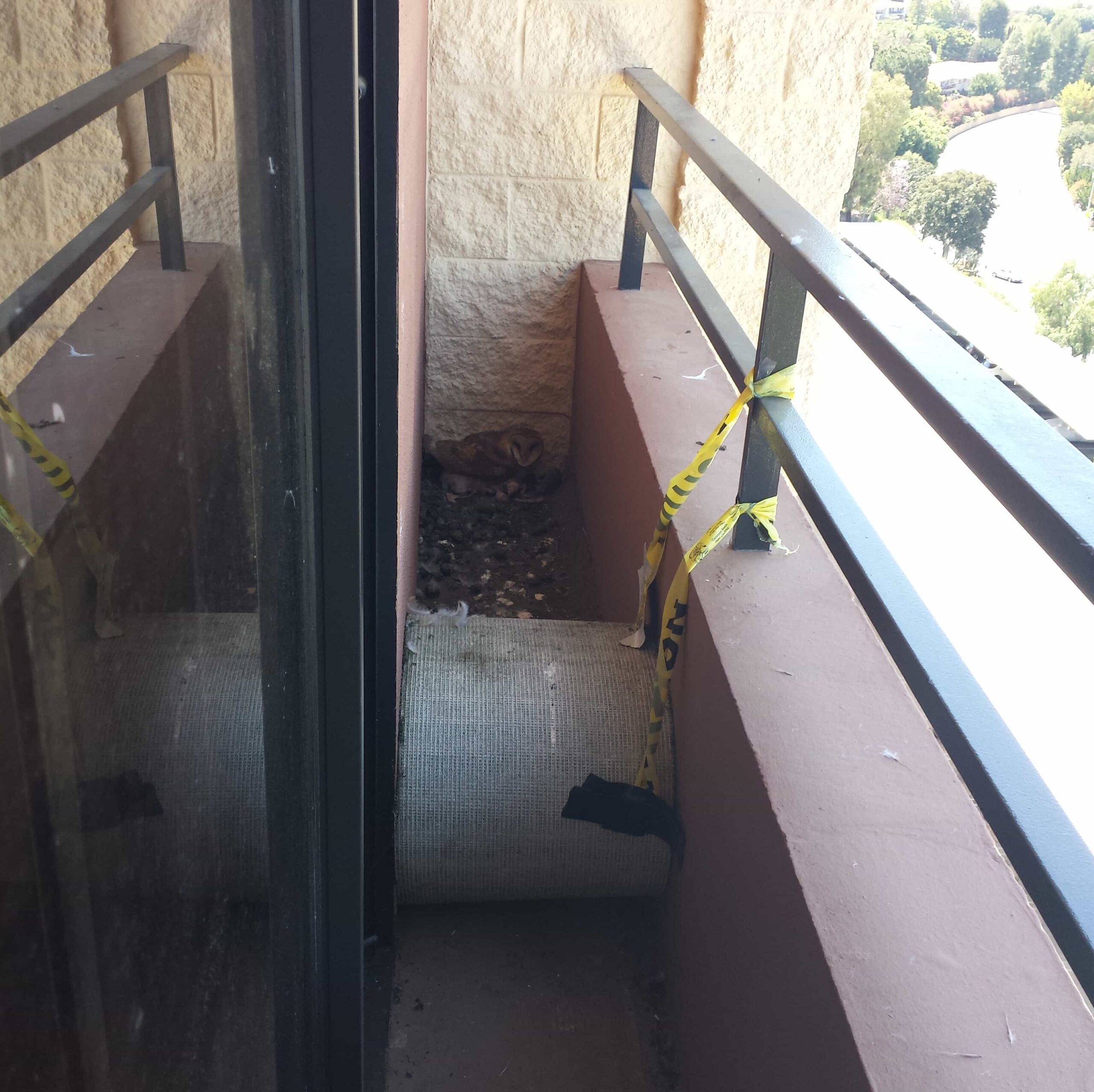 Parker crews worked non-stop, even in the rain to complete this project ahead of the allotted time schedule. Twice we had to assist in the extermination of hybrid Africanized bee colonies at 165 feet above the ground. These hybrid bees were very aggressive they swarmed chased people stinging while attacking. We secured and caulked all the upper metal flashings to prevent swallows from nesting in the open flashing gap. The crews had to wait for an owl family to hatch eggs and rear its young on one upper balcony, see photo.