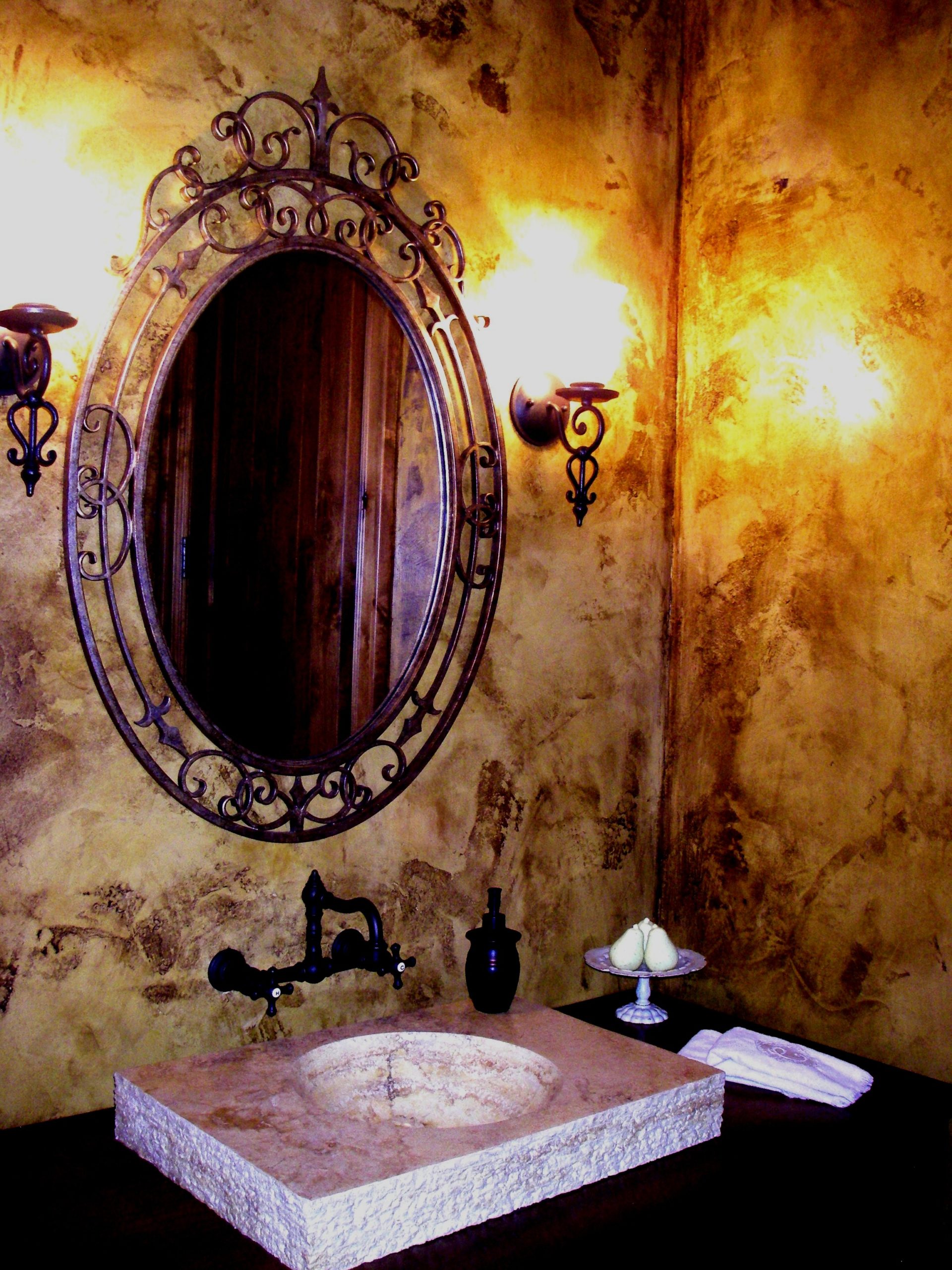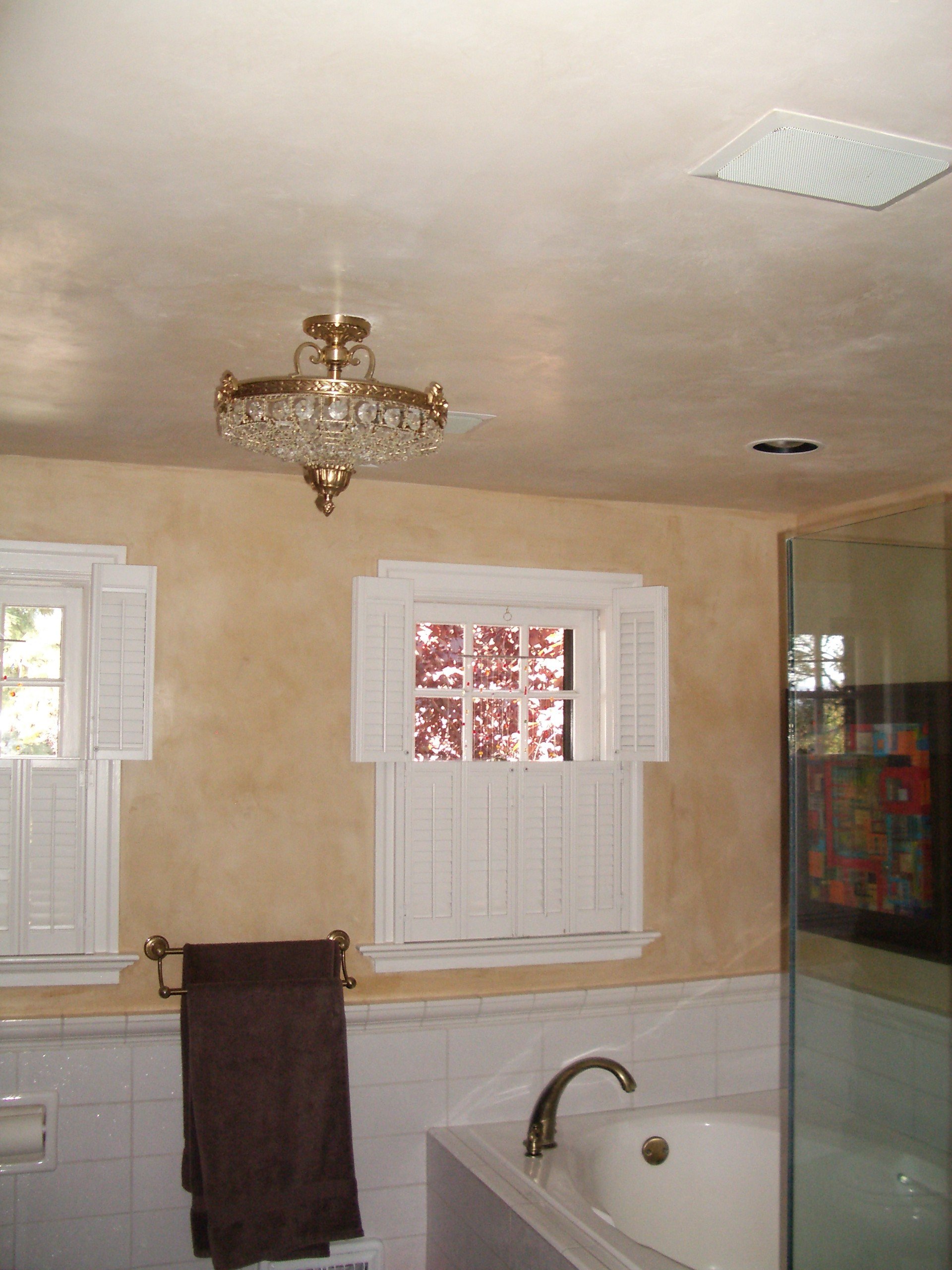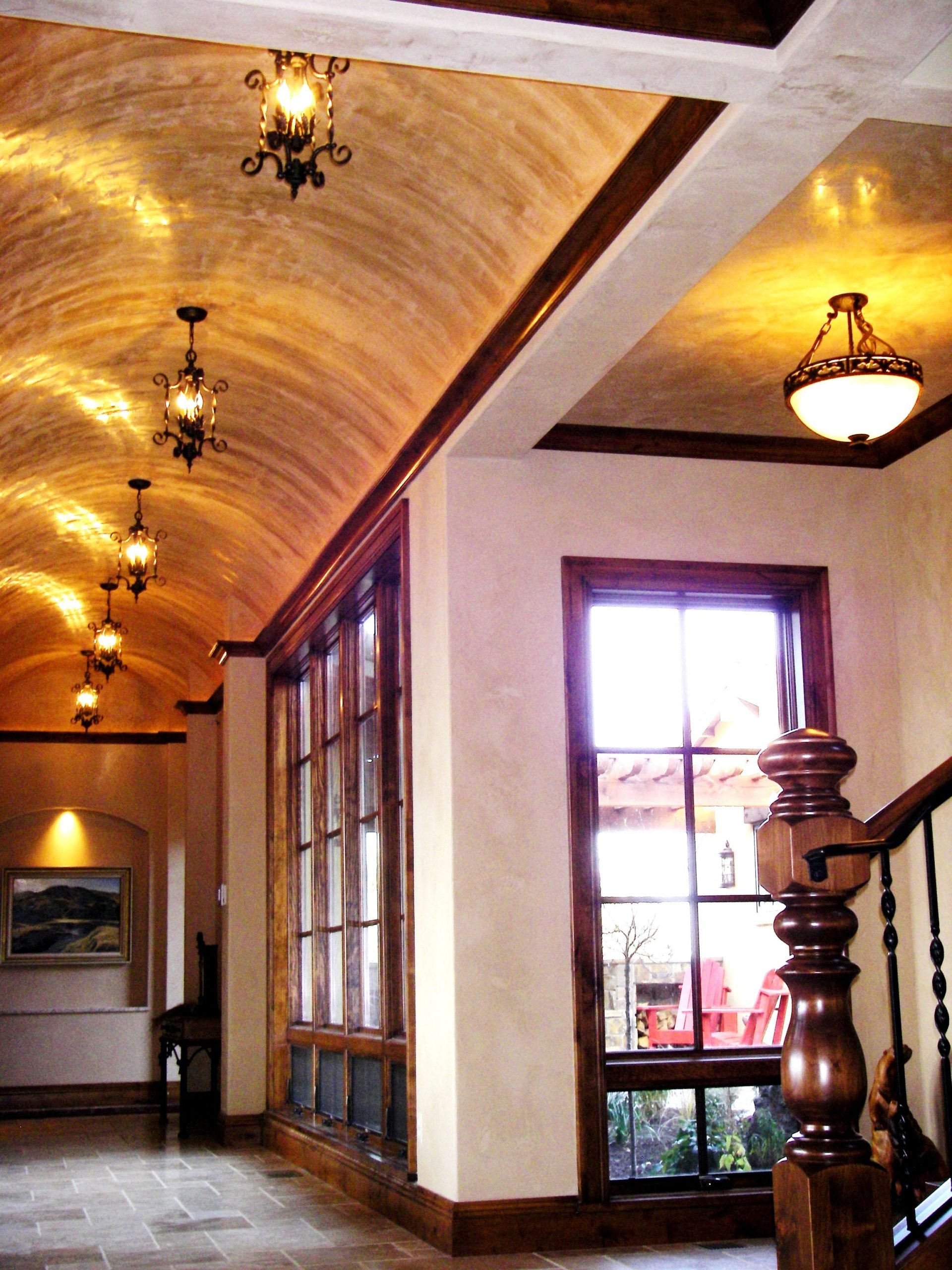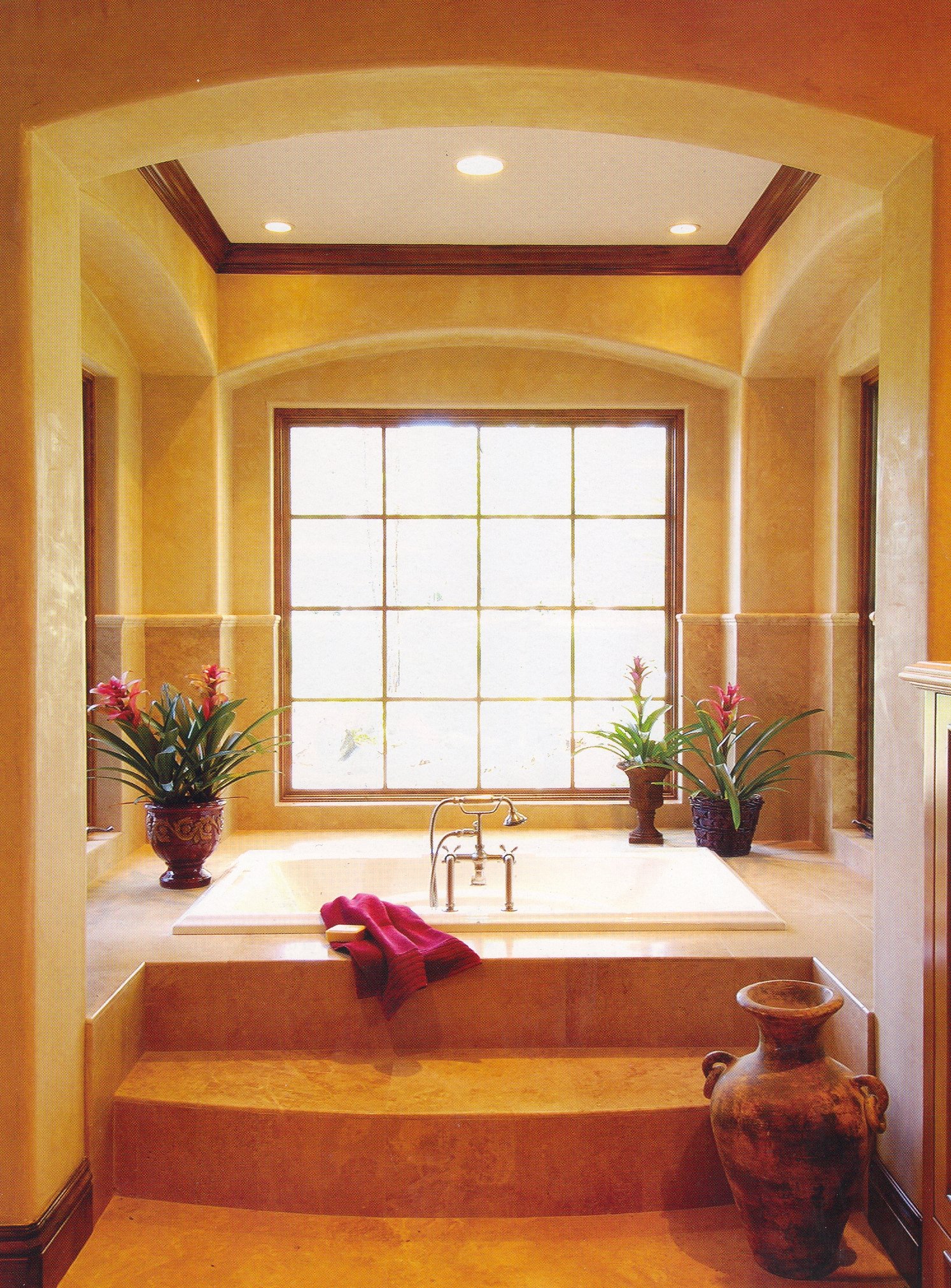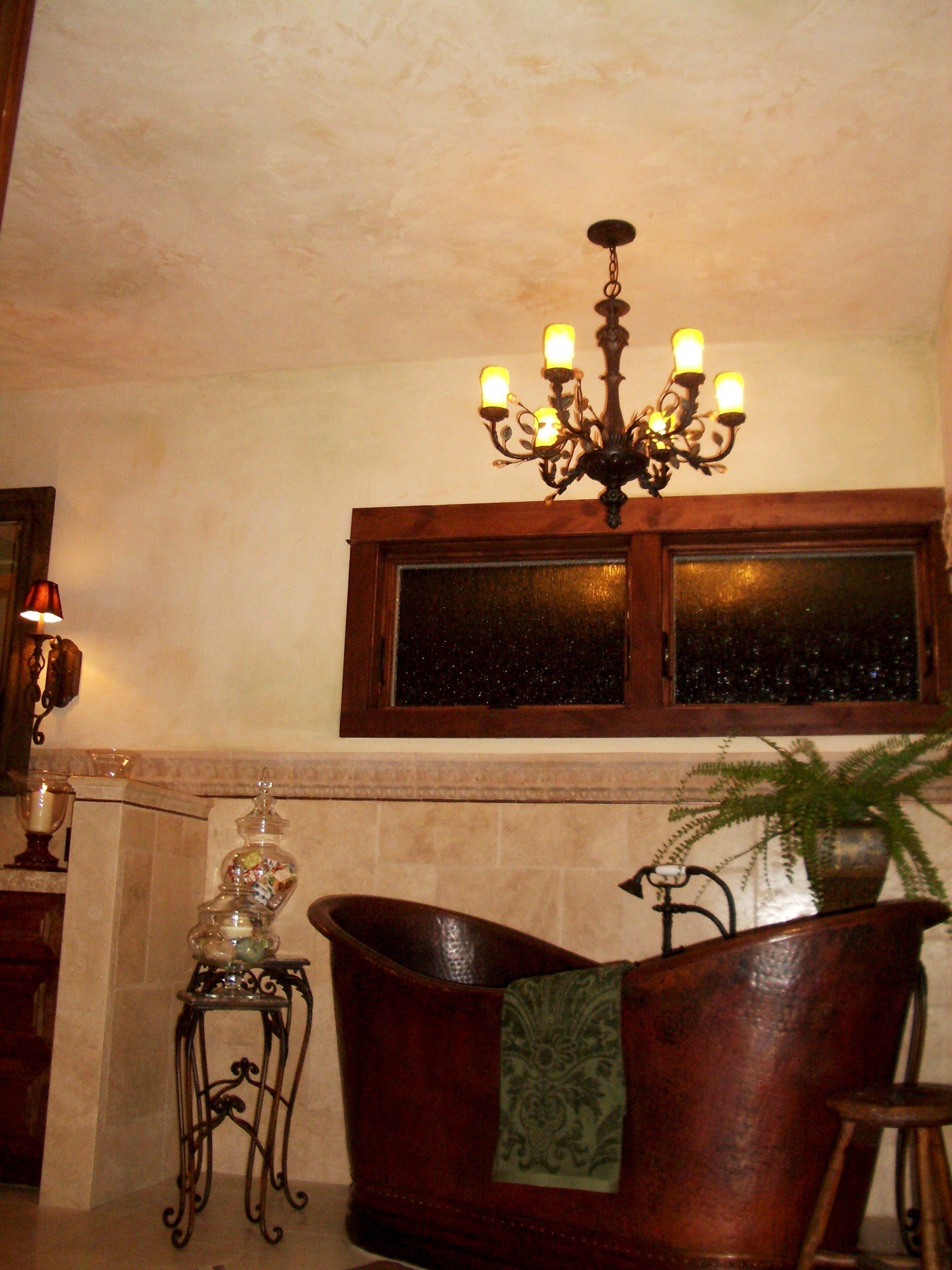 Venetian plaster is clean and will not support any mildew growth. Venetian Plaster has a much tighter and smoother surface than sand plaster, it will outlast sand plaster many times over. Venetian plaster still graces many Italian buildings since Roman times. Venetian plaster can be stained multiple times with different tints giving it a complex very rich interesting decorative look. It can be made to match up or complement any stone, granite, marble, tile, etc. We can make up 24″x 24″ sample boards to satisfy even the most demanding decorators, architects, or owners.