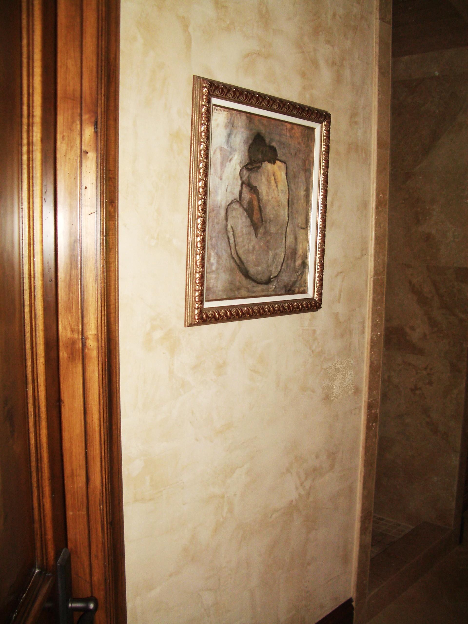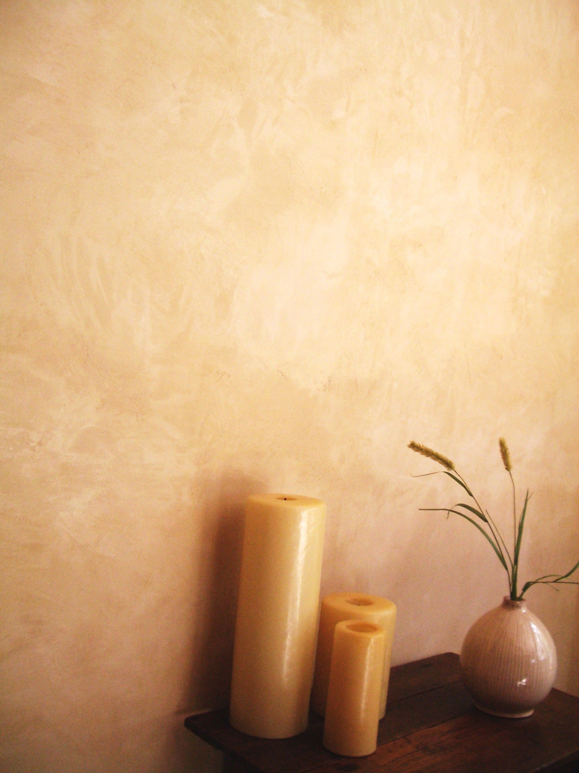 We use only authentic quality imported Venetian plaster, the material labeled Venetian plaster sold by Home Depot, Lowes, and the large chain outlets is not Venetian Plaster at all. Venetian Plaster contains no sand. It is made from slacked limestone, and marble dust using the same methods the Romans used thousands of years ago. Venetian plaster will not crack, it is waterproof, has tenacious adhesion, it will not get soft like sand plaster, it is a totally green material.