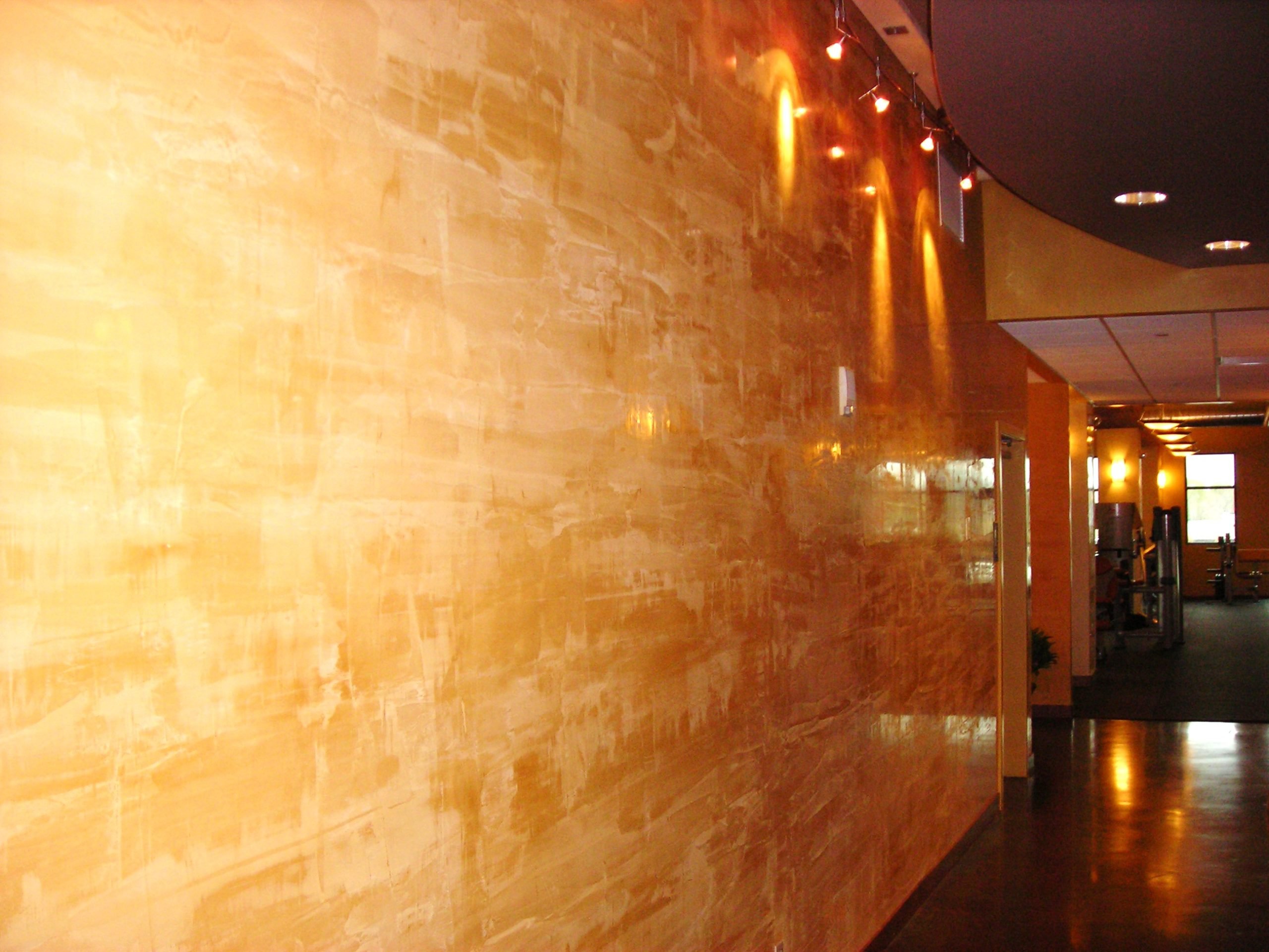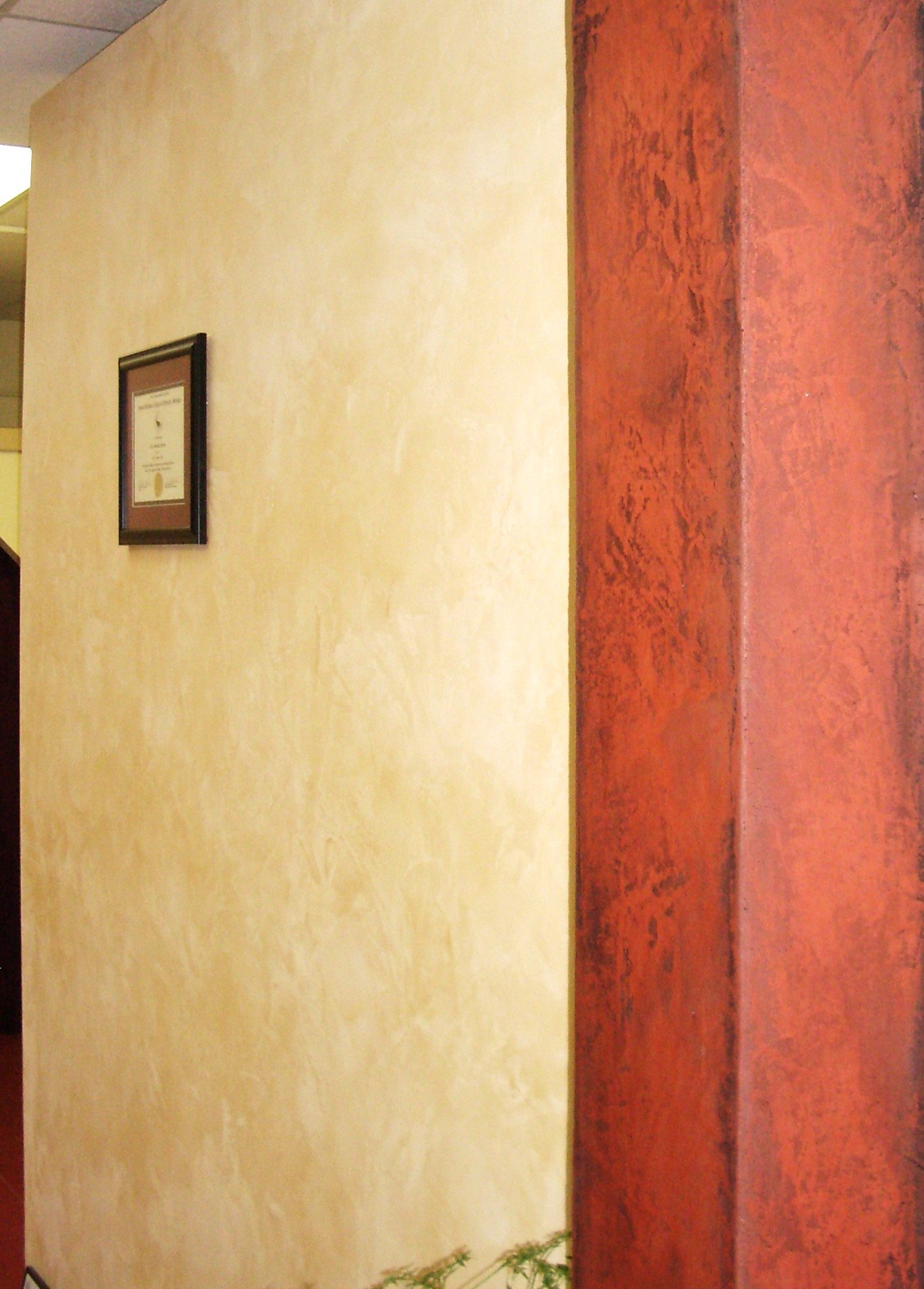 Also, view one of our beautiful local exterior smooth Venetian Plaster jobs. Exterior grade smooth Venetian plaster is most often called Marmorino. Many more styles are available for interior use with deep rich colors, metallics, highly burnished or polished. They can even look like marble or stone. They can also be wax-finished to further enhance the color and render the already cleanable surface even more washable.